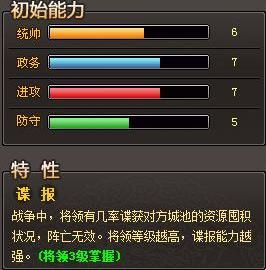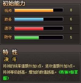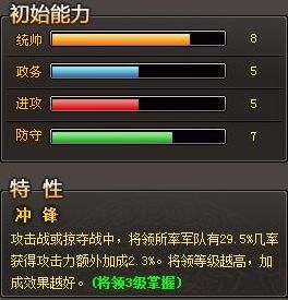 字子丹,西川大佛山人,其母乃麒麟女转世,幼随赵云习武,后得卧龙以先天罡气打通任督二脉,血麟功大成,传血麟功之秘,助云创建麒麟卫军团,以保刘氏,善骀善终,是蜀国中屈指可数的防守型将才。