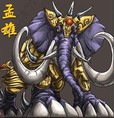 字蛮蛮,南蛮大王孟获的爱骑,生性狂暴,除孟获久无人不惧,擅驱使虎豹为其爪牙,精通践踏之技,喜于攻城拔寨,每到之处,必将践踏城邦建筑,断却敌方资源命脉。